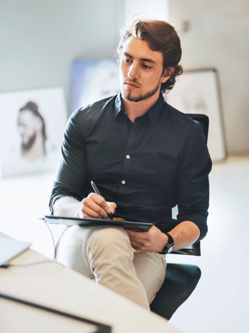 Hauptsächlich in Zusammenarbeit mit Unternehmen blüht der herzliche Maler auf, wenn es darum geht, personalisierte Portraits zu erstellen, Sujets zu gestalten, oder mit einem besonderen Logo der Firmenphilosophie gekonnt eine Grafik zu verpassen.
